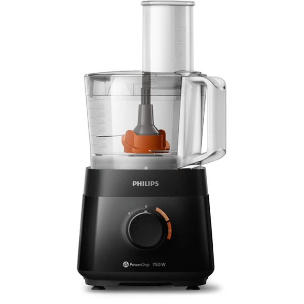 If you enjoy healthy homemade meals but have a busy schedule, you’ll love our Philips Daily Compact Food Processor. We’ve designed this compact collection especially for hectic lives. You can quickly and effortlessly prepare great dishes. • 700W • 16 functions • 2.1 L Bowl • 2 in 1 Discs • Large feeding tube • 2 Speed + Pulse • Knead, whisk, shred, slice