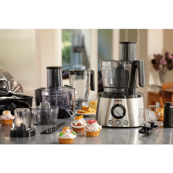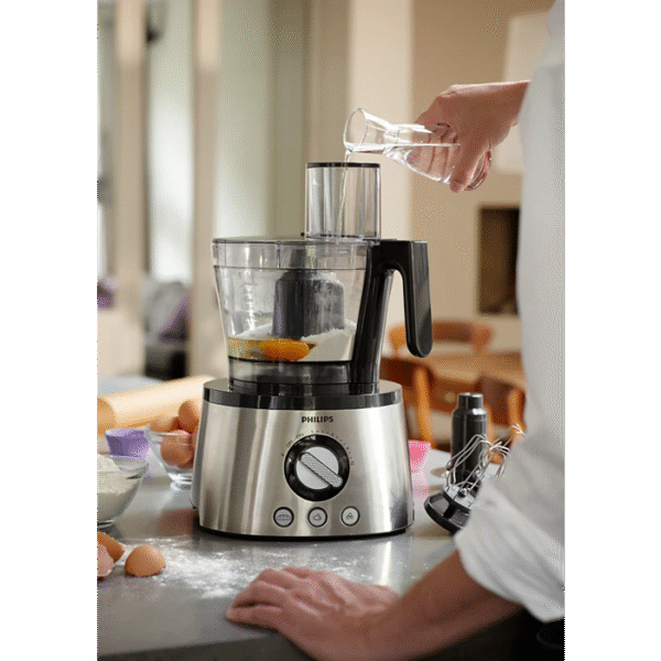 If you enjoy healthy homemade meals, you’ll love our Philips Viva Compact Food Processor. We’ve designed this collection especially for hectic lives. You can quickly prepare great dishes, even when they contain the toughest ingredients. • 850W • 30 functions • 2.1 L Bowl • 1.25L Jar • Citrus Press • Mill • 2 in 1 Discs • Large feeding tube • 2 Speed + Pulse • Knead, whisk, shred, slice