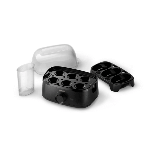 Eggs cooked the way you enjoy them. Soft, medium, hard boiled and poached eggs cooked to perfection. With enough capacity for the whole family, its compact, practical design is also easy to clean and doesn't take up much space. • Perfectly cooked eggs soft, medium, hard boiled & poached eggs • 400W with different cooking levels • Ready signal • Deep Black color