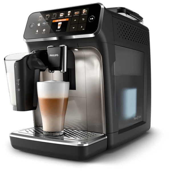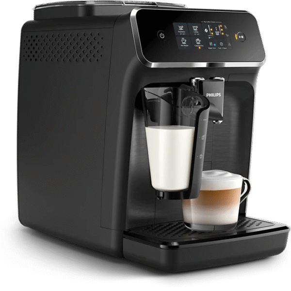 Easily make aromatic coffee varieties like Espresso, Coffee and Cappuccino at the touch of a button. LatteGo tops milk varieties with silky smooth froth, is easy to set up and can be cleaned in as little as 15 seconds* • 3 beverages • LatteGo • Touch display • Up to 5000 cups* without descaling thanks to AquaClean • Dishwasher safe parts • Made in Romania • (Espresso, Cappuccino, Black Coffee)