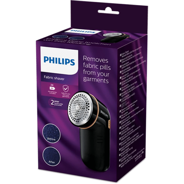 The Philips fabric fabric shaver allows you to easily and quickly remove fabric pills from all types of garments. All your garments, whether it is your sweater or your blanket, will look like new again! • Removes Fabric Pills• 8800 rounds per min • Easy to clean • Suitable for all garments • 2 Philips AA batteries incl.